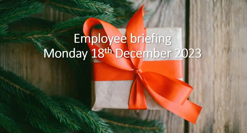 This afternoon (18.12.23), the clinic was closed from 3pm- 5pm for a clinic wide Employee Briefing meeting.